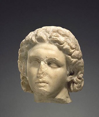 Marble head of Alexander the Great at the Paul and Alexandra Canellopoulos Museum. Dated to the 2nd century A.D. |