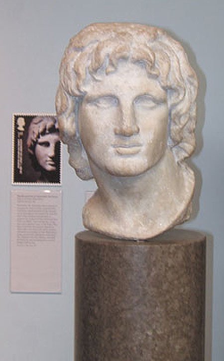The bust of Alexander the Great at the British Museum The marble head in The British Museum is a third century Hellenistic representation found in Egypt and is probably a cult statue connected with his worship. |