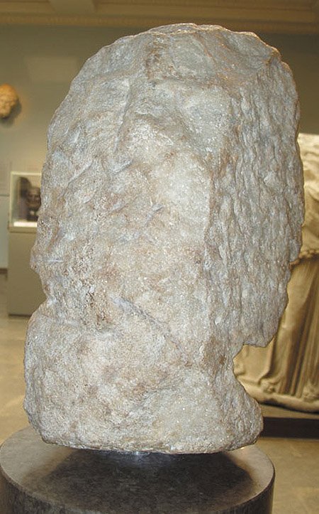 Head of Alexander the Great at the Archaeological Museum of Thasos. It is a Roman copy of the Hellenistic prototype and it is bears evidence of the continuity of the cult of Alexander from the 4th century B.C. until the Roman times. |