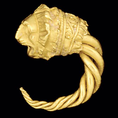 Greek gold lion headed earrings, ca. 3rd century BC