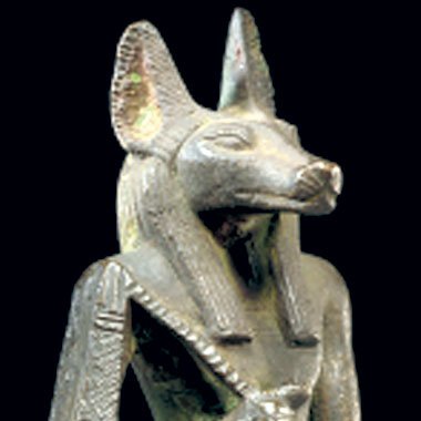 AN EGYPTIAN BRONZE STATUE OF ANUBIS